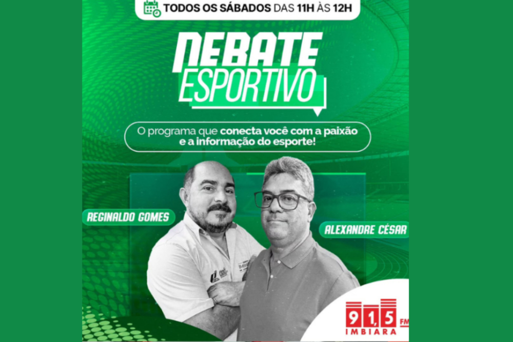 “Atenção, amantes de esportes! Aqui é o Reginaldo Gomes passando para falar dessa novidade. É o programa de esportes que fala de todos os esportes.” A fala do comunicador da Rádio Imbiara já anuncia que Araxá ganha, a partir deste sábado (27), mais um espaço dedicado ao esporte com o lançamento do programa Debate Esportivo, na Rádio Imbiara 91,5 FM, das 11h ao meio-dia. A atração será comandada por Alexandre César e Reginaldo Gomes, trazendo cobertura completa dos principais acontecimentos esportivos da cidade e da região.