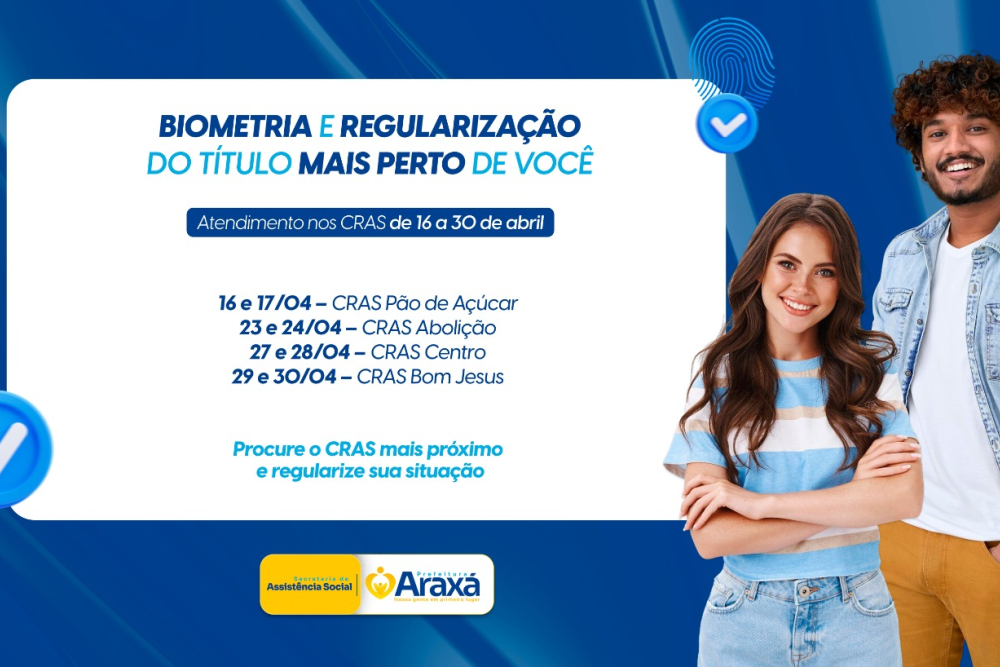 A Prefeitura de Araxá, em parceria com a Justiça Eleitoral, inicia a partir desta quinta-feira (16) uma ação itinerante para ampliar o acesso aos serviços eleitorais no município. O atendimento será realizado diretamente nas unidades dos Centros de Referência de Assistência Social (CRAS), com foco na coleta de biometria e regularização do título de eleitor, facilitando o acesso principalmente para usuários dos serviços socioassistenciais.