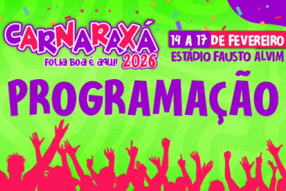 Evento gratuito acontece de 14 a 17 de fevereiro com desfile de blocos, trio elétrico, shows, praça de alimentação e espaço kids no Estádio Fausto Alvim