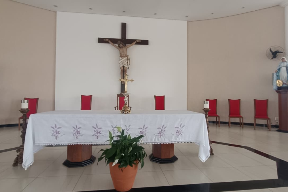 Segundo o padre, o local foi adaptado conforme o espaço disponível, criando uma área mais ampla e acolhedora para os eventos.