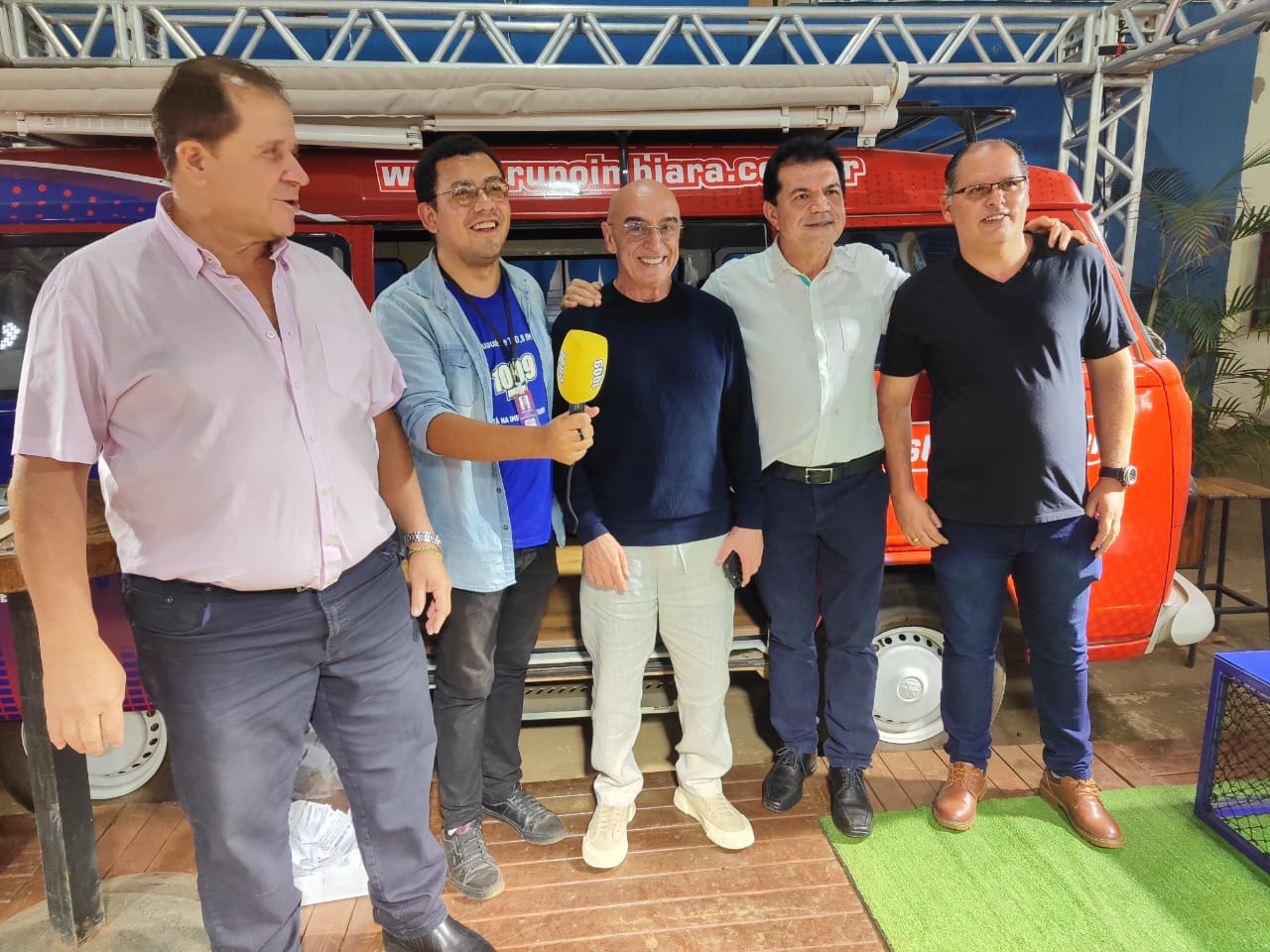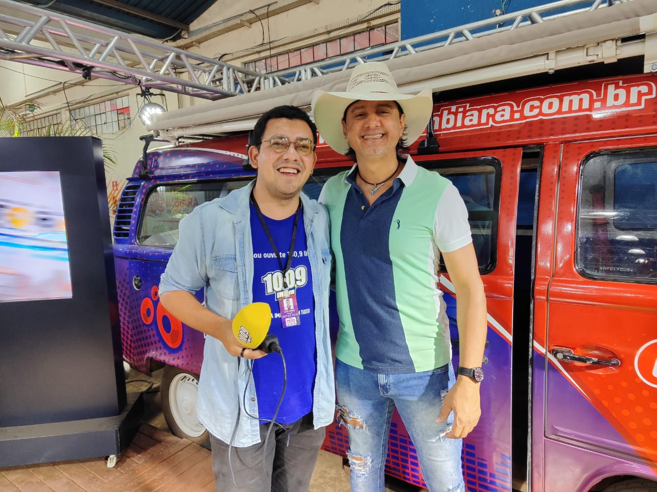 Emílio do Emílio e Eduardo visitando o stand do Grupo Imbiara de Comunicação. Foto: Manu Chagas