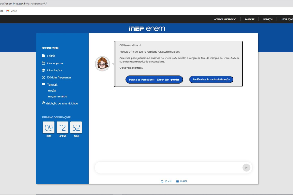 O pedido deve ser feito exclusivamente pela Página do Participante, utilizando a conta Gov.br. No mesmo período, candidatos que faltaram aos dois dias de prova do Enem 2025 precisam justificar a ausência para garantir o direito à gratuidade na edição de 2026.