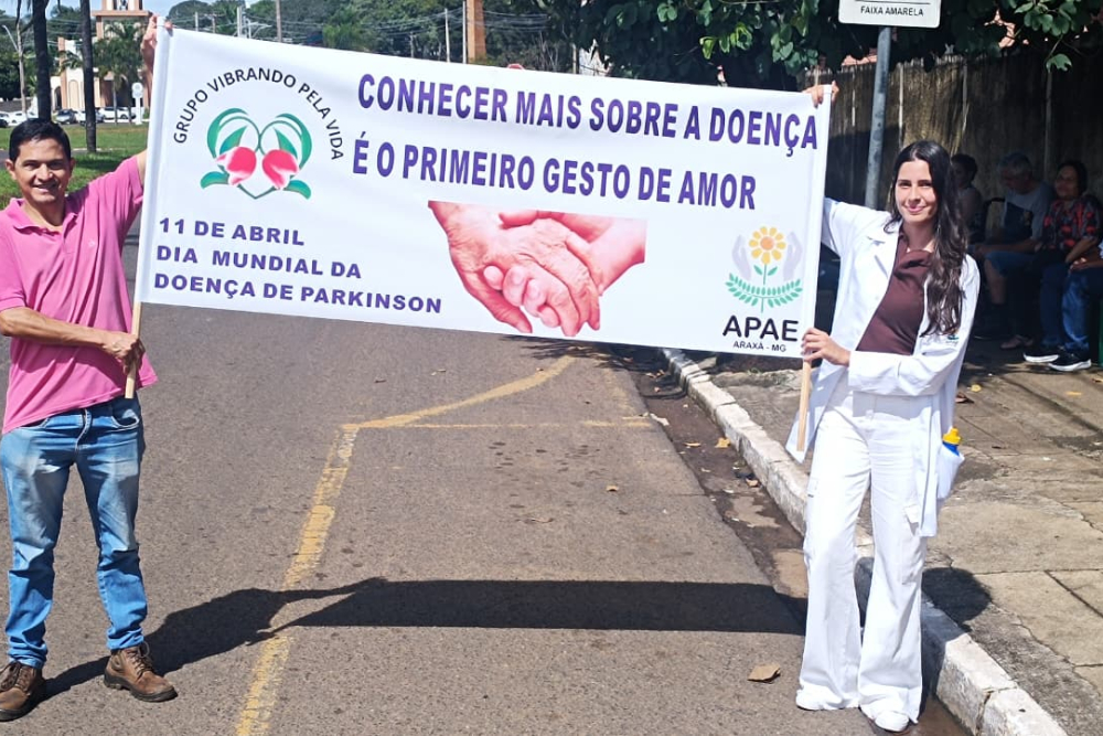A Associação de Pais e Amigos Excepcionais de Araxá (Apae) promoveu, na manhã desta quinta-feira (9), uma blitz educativa em alusão ao Dia Mundial da Doença de Parkinson. A ação teve como objetivo conscientizar a população sobre a doença, reforçar a importância do diagnóstico precoce e mostrar que é possível manter qualidade de vida mesmo após a confirmação da condição.