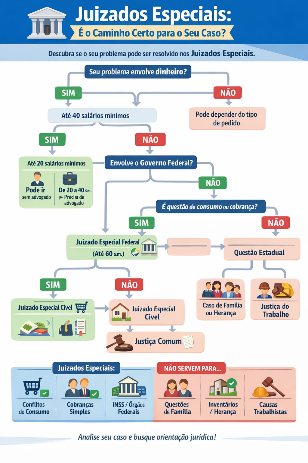 Os Juizados Especiais Cíveis, na esfera estadual, e os Juizados Especiais Federais atendem milhões de pessoas todos os anos, especialmente em causas de menor complexidade e com valores reduzidos. Para ajudar o cidadão a identificar o melhor caminho jurídico, um guia prático em formato de perguntas e respostas pode facilitar essa decisão.