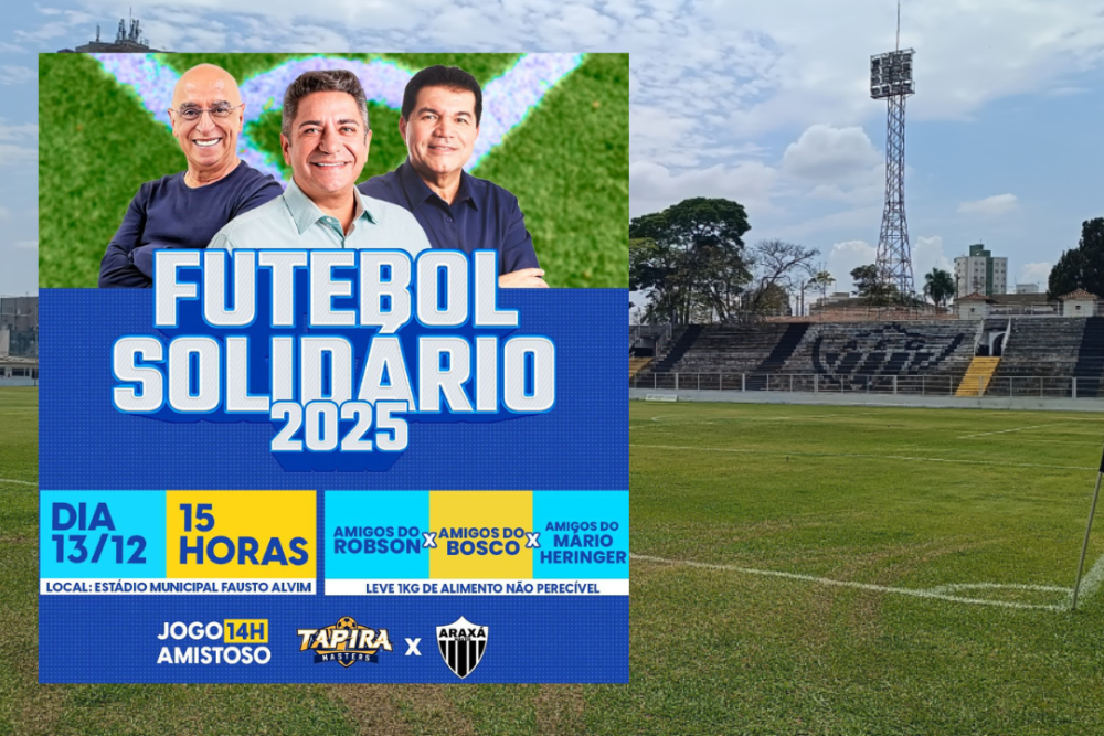 A programação começa a partir das 13h, com música ambiente e movimentação no estádio. Às 14h, será realizado o amistoso entre Tapira Master e Araxá Esporte Master. Já às 15h, ocorre o jogo principal do Futebol Solidário, reunindo os amigos do prefeito Robson Magela, os amigos do deputado estadual Bosco e os amigos do deputado federal Mário Heringer.