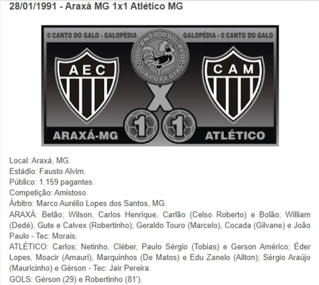 Ficha técnica ressalta a força do Araxá Esporte no início dos anos 1990. Foto: Arquivo Pessoal Marcelo Araxá