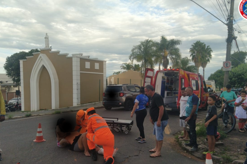 Uma mulher de 39 anos ficou ferida após um acidente envolvendo um automóvel e uma motocicleta na tarde desta quarta-feira (18), em Araxá. A ocorrência foi registrada por volta das 17h04, na Avenida Amazonas, no bairro São Geraldo, e mobilizou equipes do Corpo de Bombeiros.