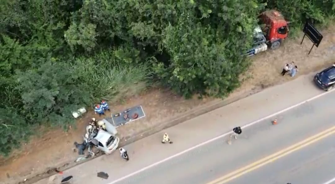 De acordo com informações da Polícia Rodoviária Federal, a ocorrência foi registrada por volta das 10h45 e envolveu um automóvel Ford Ka e um caminhão leiteiro. O acidente foi do tipo colisão frontal, seguida de saída de pista.