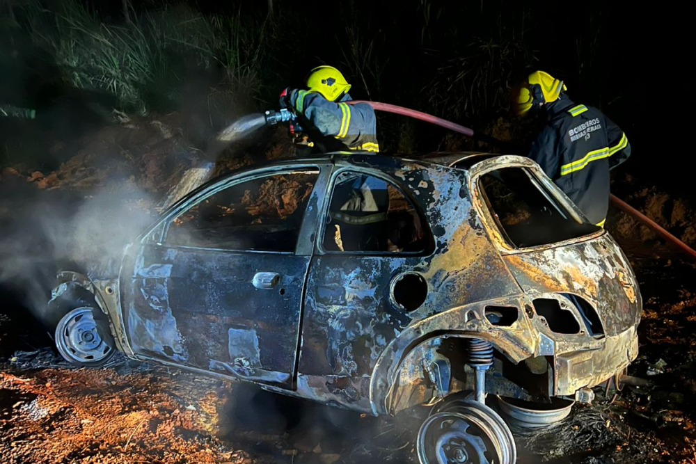 Veículo foi encontrado em chamas na noite de sábado (18)