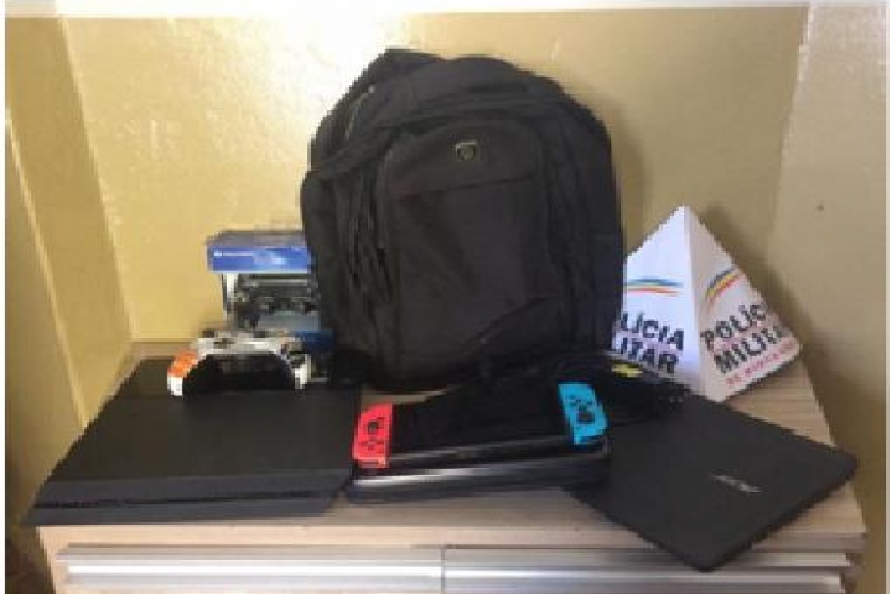Após patrulha o autor foi localizado no bairro Jardim América, com uma mochila onde foram encontrados outros objetos roubados. O homem foi encaminhado à delegacia de polícia civil.