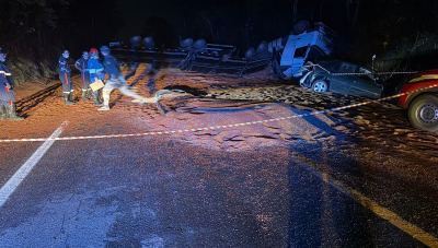 Acidente aconteceu na madrugada deste domingo (12); vítimas foram arremessadas do veículo e encaminhadas à UPA