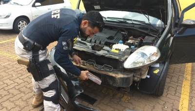 Durante fiscalização de rotina da Polícia Rodoviária Federal, condutor do veículo apresentou atitude suspeita e as drogas foram encontradas no para-choque