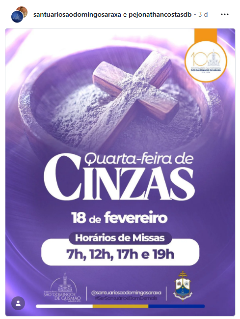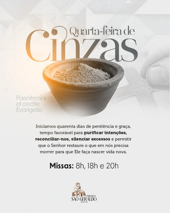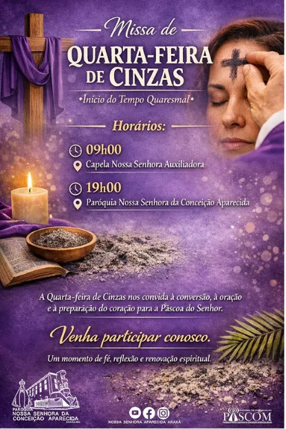 A Quarta-feira de Cinzas marca o começo da Quaresma, período de 40 dias que antecede a Semana Santa. É um tempo dedicado à oração, ao jejum, à penitência e à conversão.