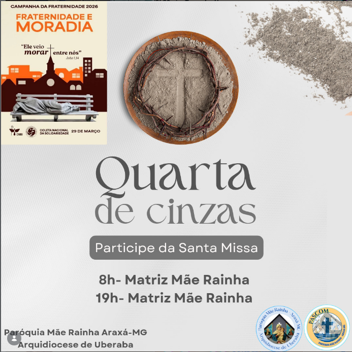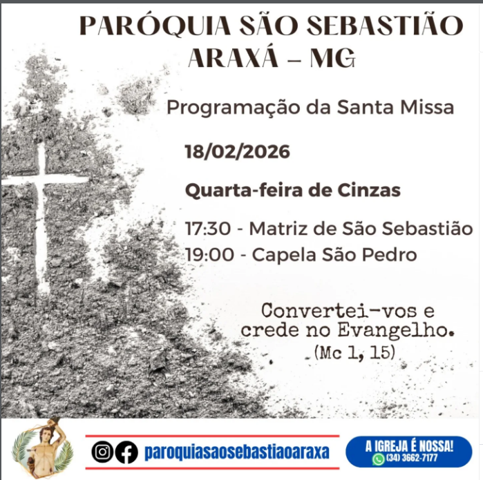 As oito paróquias de Araxá, que integram a Arquidiocese de Uberaba, realizam nesta quarta-feira (18) celebrações especiais da Missa de Cinzas, data que abre oficialmente o período da Quaresma no calendário da Igreja Católica.