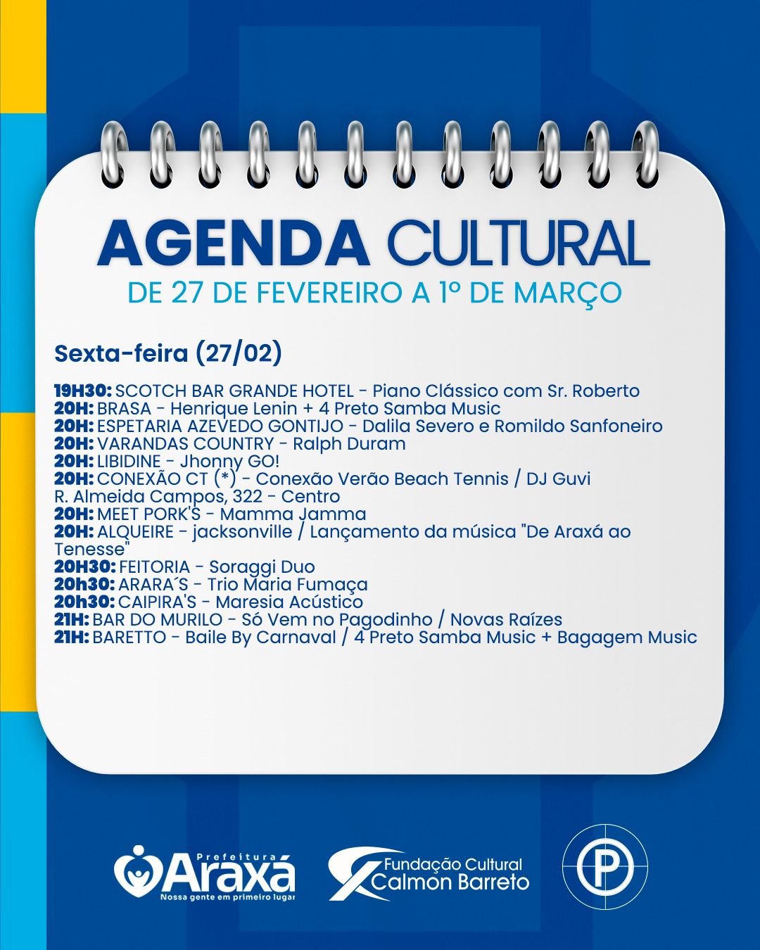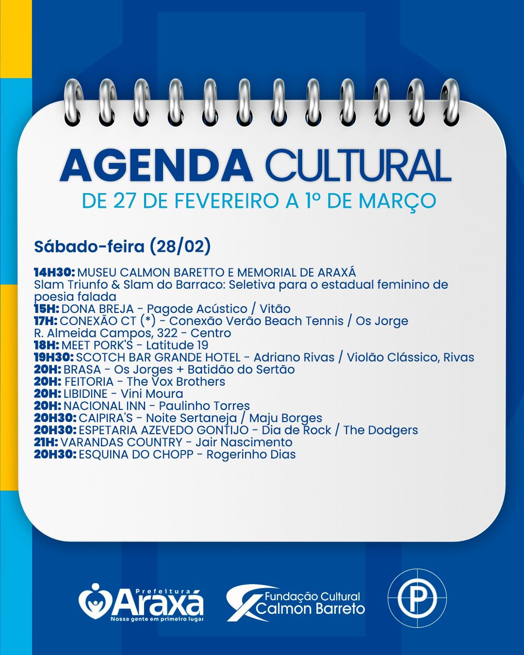 Para celebrar o fim de fevereiro e o início de março: Agenda Cultural chega com as atrações de fim de semana em Araxá
