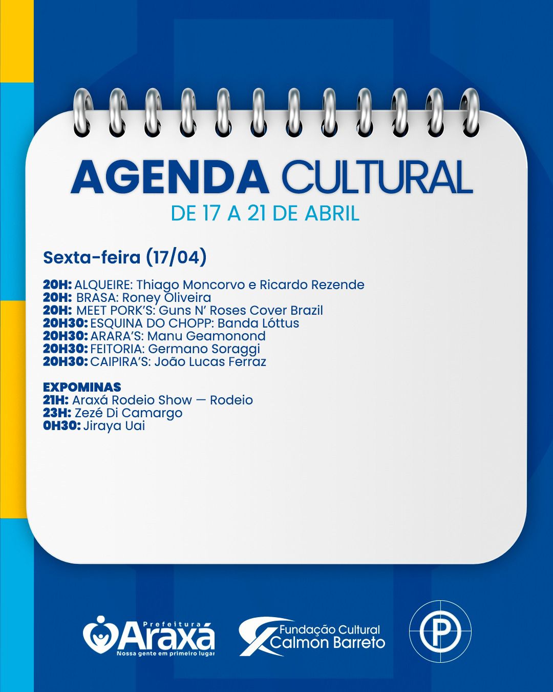 Agenda Cultural destaca as atrações de Araxá para o fim de semana e feriado de Tiradentes