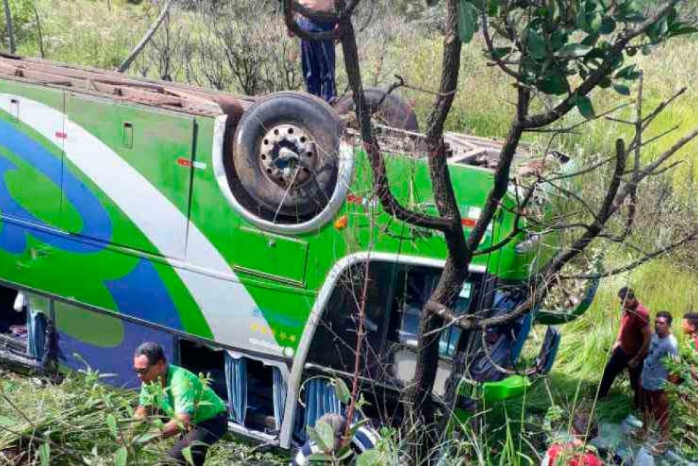 Ônibus tomba na estrada de Uberlândia. Foto: Reprodução