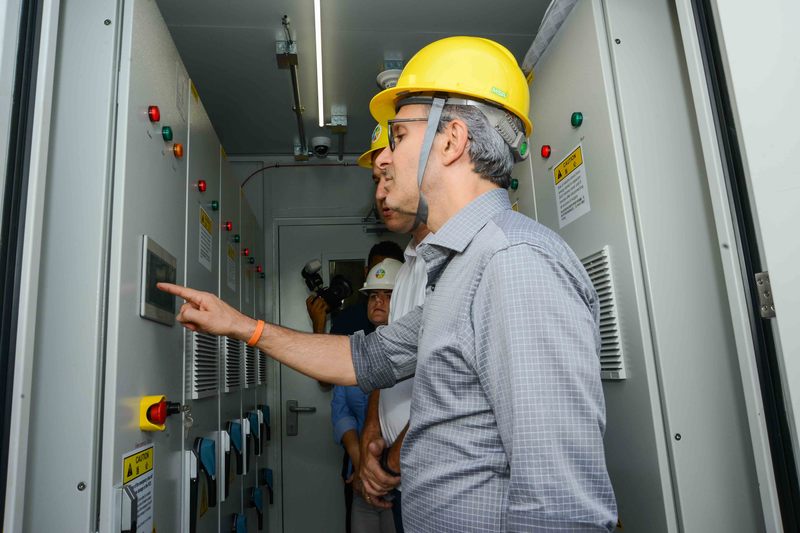 Romeu Zema também visitou a Alsol Energias Renováveis. A empresa, do grupo Algar, é especializada em geração de energia utilizando diferentes fontes renováveis. Nesta sexta-feira, a Cemig e a empresa iniciaram a operação do primeiro sistema de armazenamento de energia em larga escala junto a uma usina fotovoltaica, com potência máxima de 1,26 MVA e capacidade de armazenamento de 1,36 MWh, em Uberlândia. Os primeiros testes na rede elétrica devem ser feitos ainda neste mês.